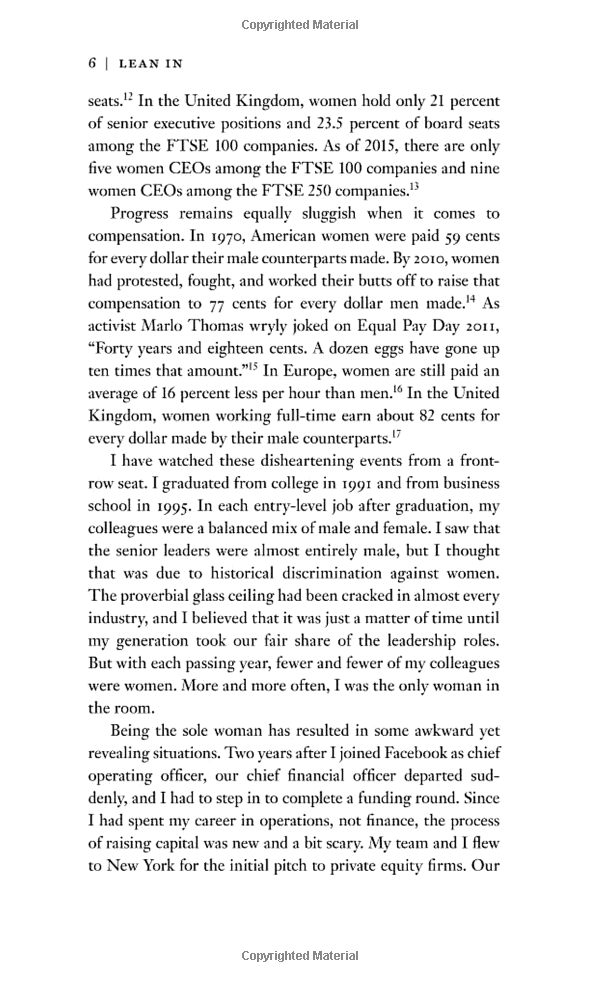 Thirty years after women became 50 percent of the college graduates in the United States, men still hold the vast majority of leadership positions in government and industry. This means that women’s voices are still not heard equally in the decisions that most affect our lives. In Lean In, Sheryl Sandberg examines why women’s progress in achieving leadership roles has stalled, explains the root causes, and offers compelling, commonsense solutions that can empower women to achieve their full potential.