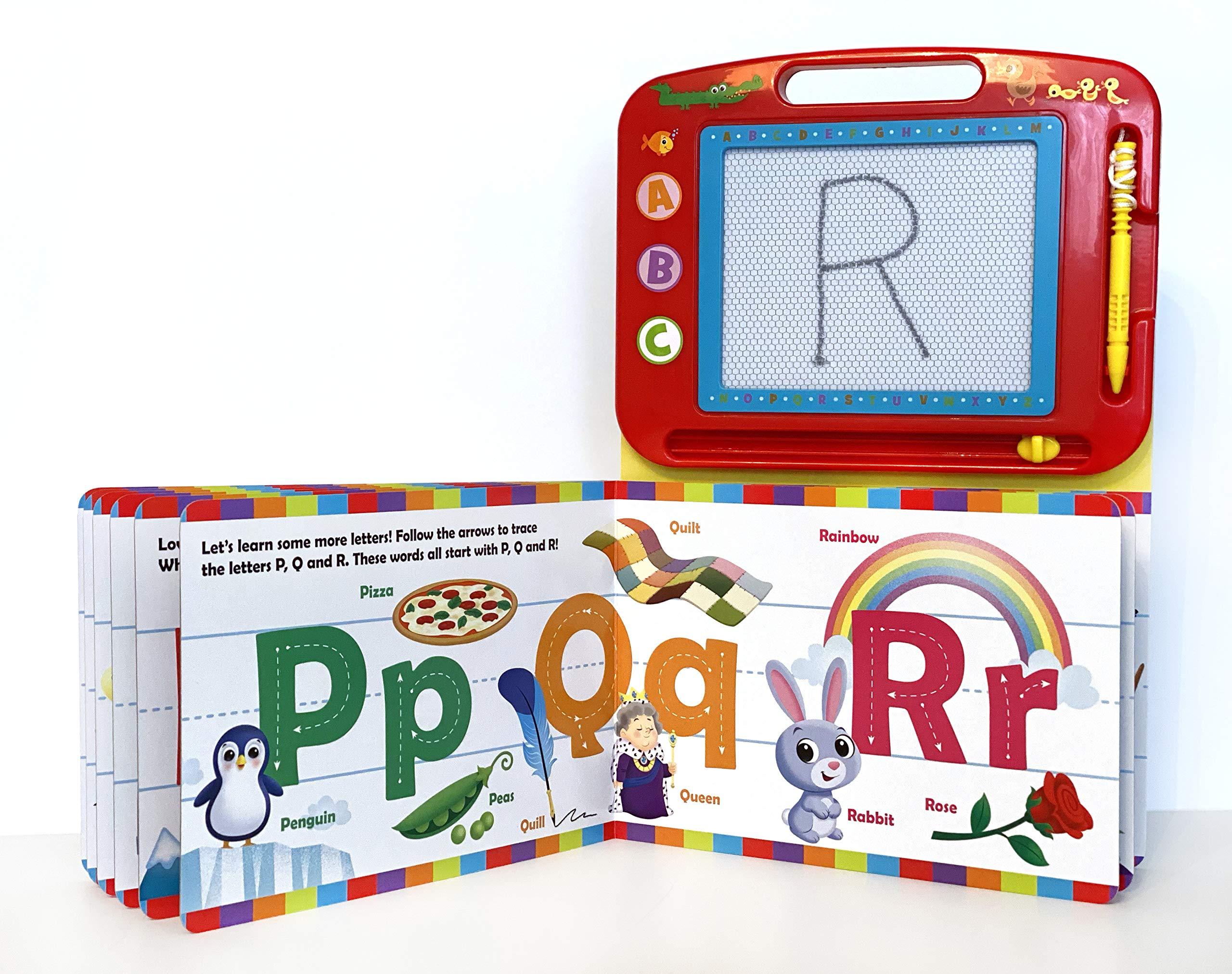 Learn to write all the letters of the alphabet in this fun collection of pictures! Designed for children 36 months and up, the Learning Series offers children the opportunity to develop fine motor skills while having fun. Includes a reusable magnetic pen and drawing pad as well as step-by-step instructions. The erasable drawing pad makes it easy to practice until perfect. Sure to please children and adults alike!
