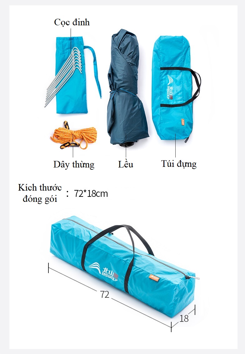 – Kích thước lều lớn, không gian rộng rãi thoải mái cho 3-4 người sử dụng.