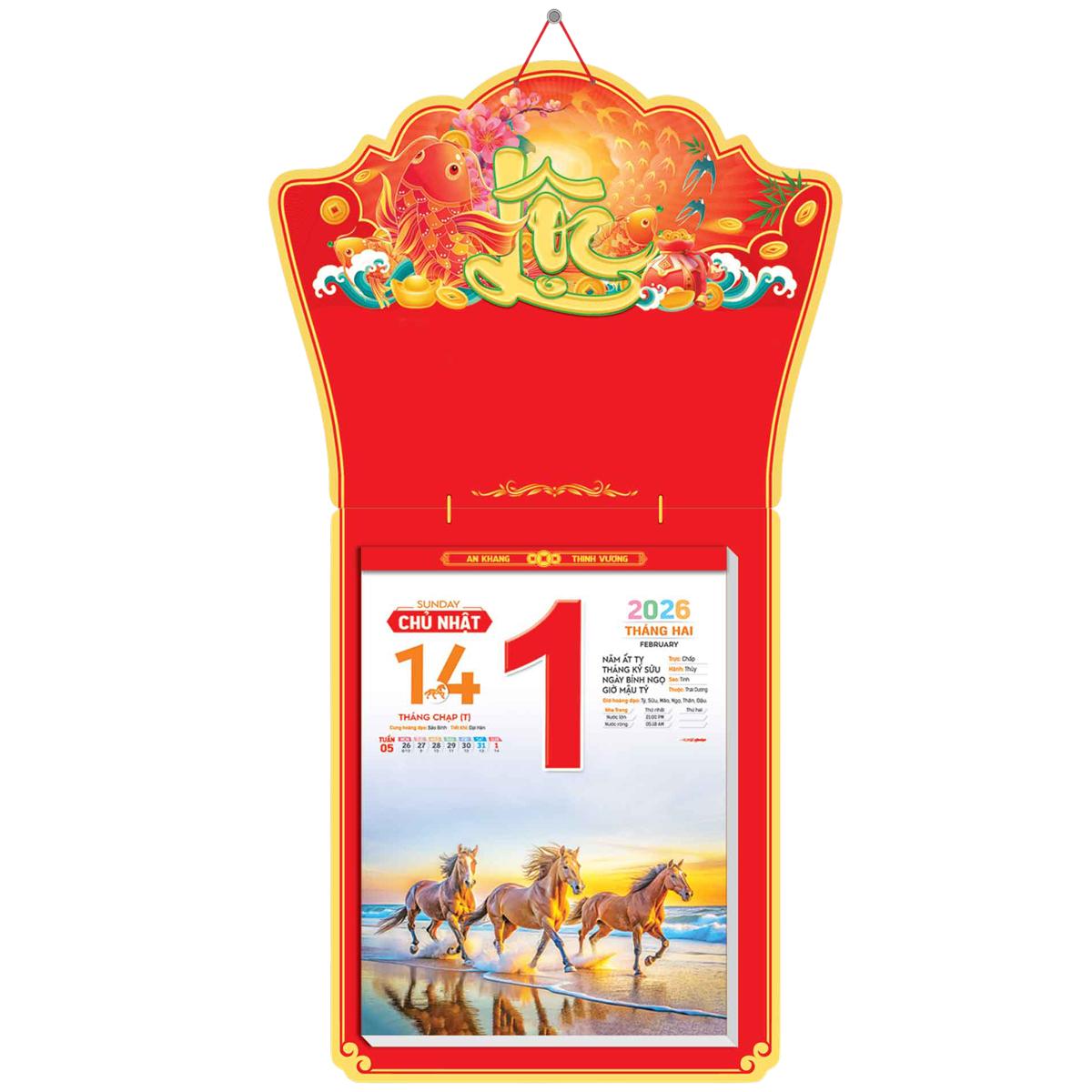 Lịch 2026 Bloc Cực Đại Rời – Mã Đáo Thành Công | Lịch Tết Treo Tường Cao Cấp Vanlangbooks | FREESHIP (Mã: VL08) Lịch 2026 Bloc Cực Đại Rời – Chủ đề Mã Đáo Thành