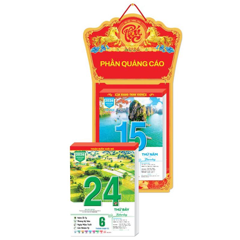 - Quyển Bloc lịch 2026 dùng gắn vào các loại bìa lịch treo tường, thay thế Bloc năm cũ. * QUY CÁCH BLOC LỊCH: - Chất lượng in công nghệ hiện đại, sắc nét, in