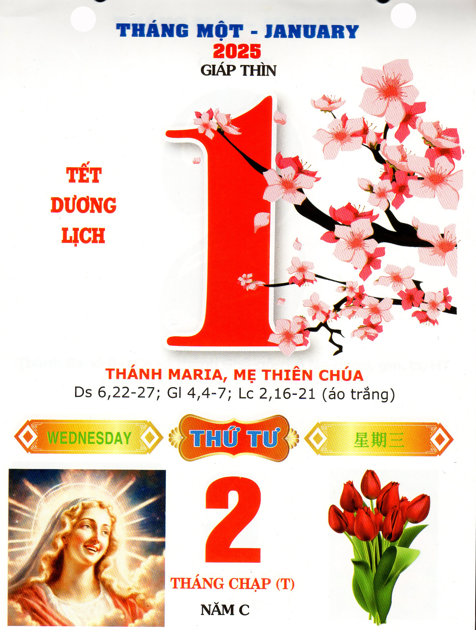 Bloc lịch Công Giáo thích hợp gắn vào các loại bìa lịch treo tường, thay thế bloc năm cũ.