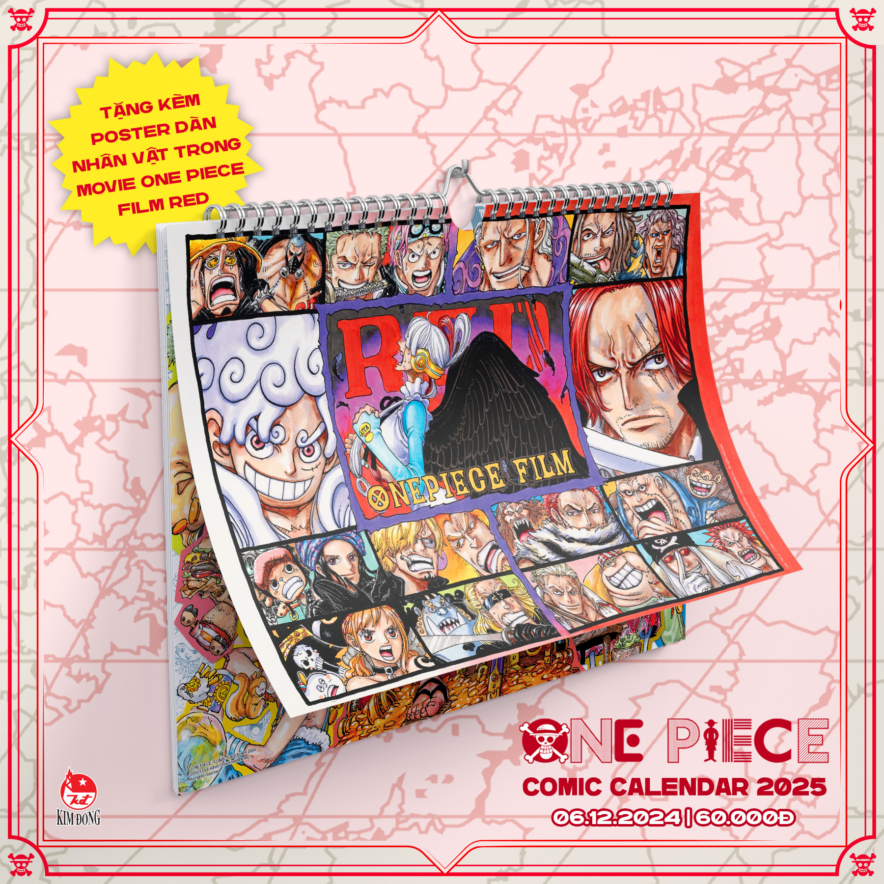 ✨Lịch treo tường One Piece Năm 2025 chính hãng Kim Đồng + Tặng kèm Poster