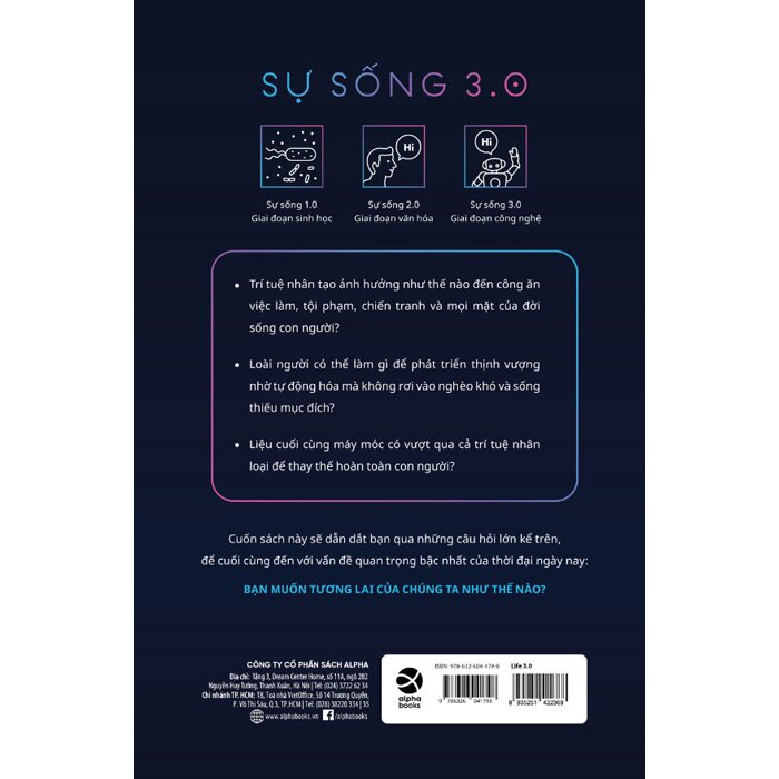 2. Không chỉ là một cuốn sách về AI - mà là bản đồ định hình tương lai sự sống Life 3.0 không bó hẹp trong chủ đề trí tuệ nhân tạo. Cuốn sách mở rộng biên độ ra toàn bộ quá trình tiến hóa của sự sống - từ Life 1.0 (sự sống sinh học thuần túy) đến Life 2.0 (con người có văn hóa và tư duy), và hướng tới Life 3.0 – sự sống có thể thiết kế phần cứng và phần mềm của chính mình. Điều đó khiến cuốn sách không chỉ là dành cho dân công nghệ. Nó là cuộc đối thoại nhân loại về cách ta muốn viết nên vận mệnh của mình - trên Trái đất, và có thể là cả trong vũ trụ rộng lớn bao la.