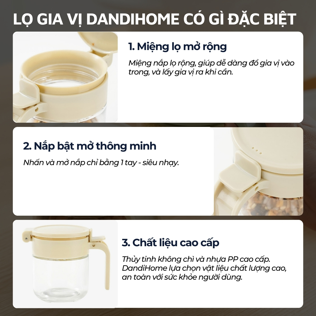 ✨Lọ đựng gia vị, hũ đựng gia vị thủy tinh và nhựa PP DandiHome sang trọng, bền, đẹp, tiện lợi