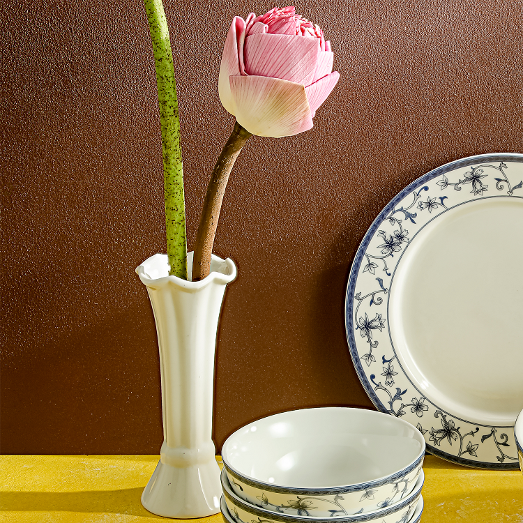 Lọ hoa bô đê sứ trắng có kích thước vừa phải, thiết kế tối giản nhưng mang lại cảm giác sang trọng, thanh cao phù hợp trong mọi không gian dù ở khách sạn, nhà hàng cao cấp hay bàn ăn, phòng khách gia đình.