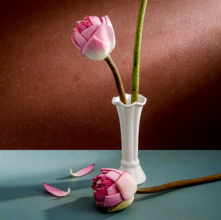 Điểm nhấn tạo nên vẻ đẹp đặc biệt của lọ hoa nằm ở phần miệng và phần đáy: phần miệng và thân lọ được vuốt những đường cong uyển chuyển như những cánh hoa. Phần thân thu hẹp và mở rộng ở phần đáy.