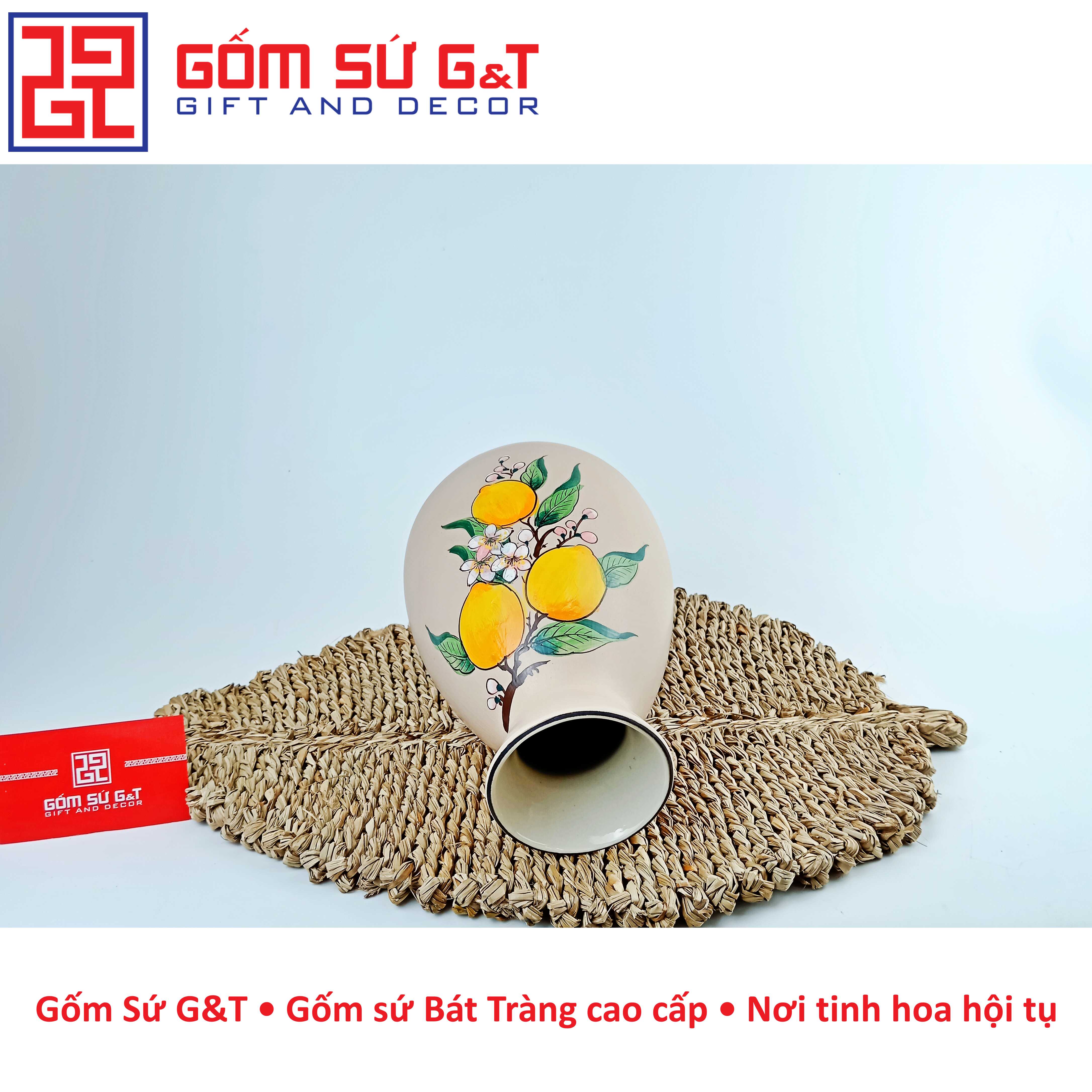 Lọ hoa dáng đùi dế vẽ cam Bát Tràng là một sản phẩm thủ công độc đáo, được làm từ chất liệu gốm sứ cao cấp. Với thiết kế tinh tế và đa dạng về