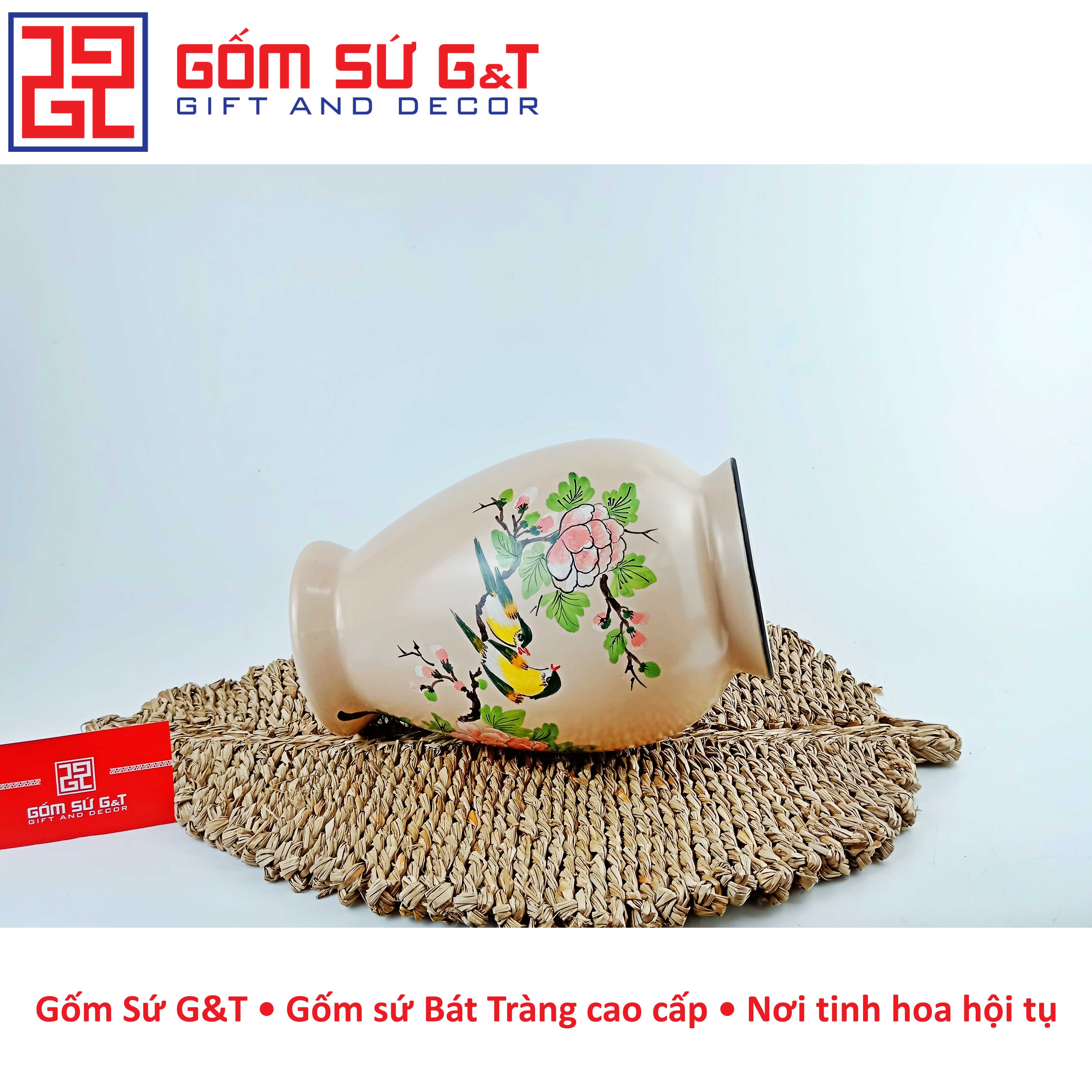 Lọ hoa dáng bom vẽ chim đào Bát Tràng là một sản phẩm thủ công độc đáo, được làm từ chất liệu gốm sứ cao cấp. Với thiết kế tinh tế và đa dạng về