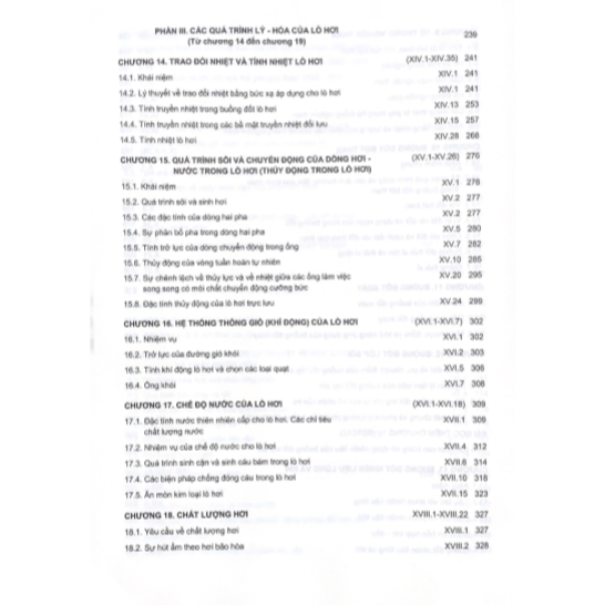 Phần III : Các quá trình lý, hóa của lò hơi, gồm 6 chương (từ chương 14 đến chương 19);