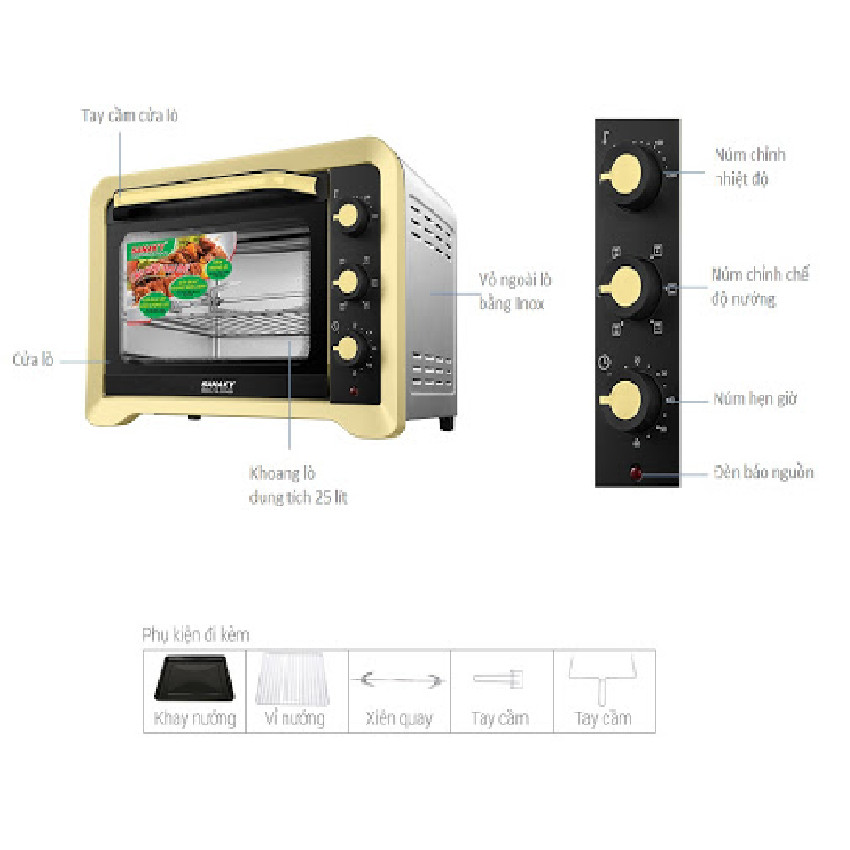 Lò nướng thùng Sanaky 30 lít VH-309S2D Thông số kỹ thuật - Dung tích:30 lít - Chất liệu vỏ: Thép phủ sơn tĩnh điện - Nhiệt độ: 100 - 230°C - Bảng điều khiển: Cơ