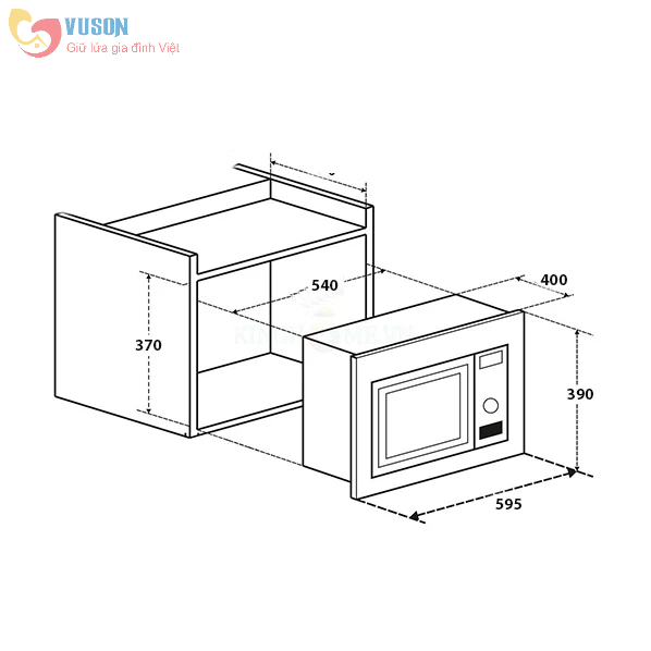 - Lò được thiết kế âm tủ, màu sắc đen sang trọng, kích thước 388x592x401 mm, tiết kiệm không gian bếp. (Lưu ý: lò cũng có thể đặt dương)