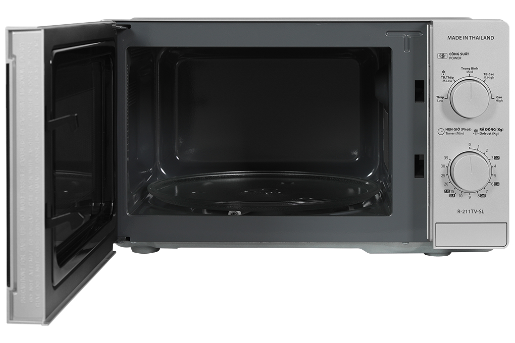 Lò vi sóng Sharp R-211TV-SL 21 lít được sản xuất tại Thái Lan, dung tích 21 lít, màu bạc sang trọng, hiện đại, dễ sử dụng với bảng điều khiển nút vặn, là thiết bị hỗ trợ bạn hâm nóng, chế biến thức ăn nhanh chóng, tiện lợi.