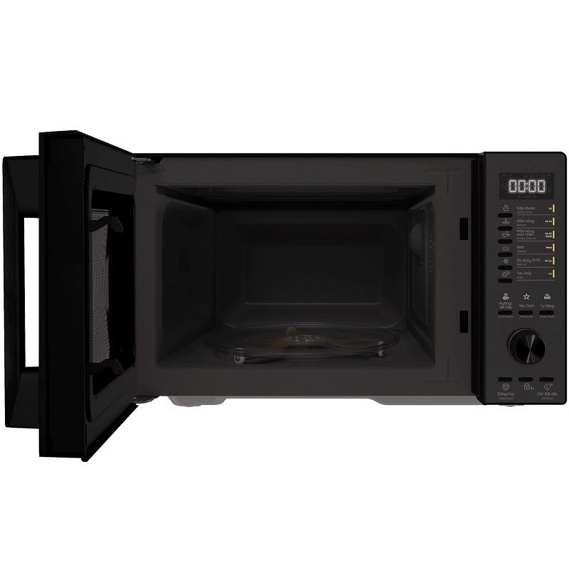 Lò vi sóng dung tích 20 lít, có thể bỏ vừa gà nguyên con 1kg Công suất vi sóng tối đa 1270W, nướng tới 1000W nấu nhanh Lò vi sóng có 4 chức năng chính: