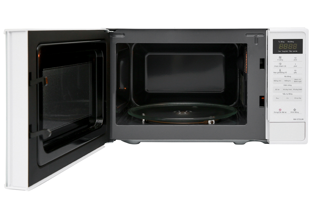 Lò vi sóng Panasonic NN-ST25JWYUE 20 lít kích thước nhỏ gọn, màu sắc trang nhã phù hợp với mọi không gian bếp Dung tích 20 lít có thể bỏ vừa gà nguyên con khoảng 1 kg Lò vi sóng đa