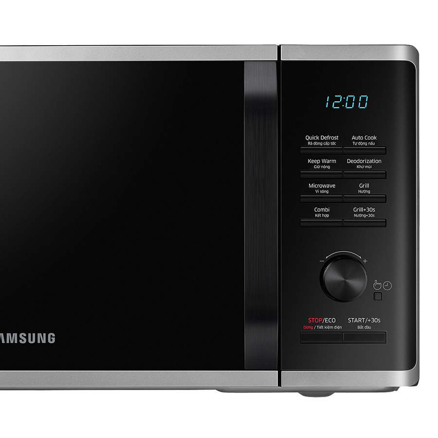 Samsung MG23K3515AS/SV còn có bảng điều khiển bằng nút nhấn kết hợp nút vặn dễ dàng sử dụng. Có nhiều mức điều chỉnh công suất và thời gian giúp bạn chế biến được nhiều món ăn khác nhau. Bên cạnh đó, bạn có thể tạo ra nhiều món ăn hấp dẫn bằng cách lựa chọn công thức nấu món ăn truyền thống đa dạng đã được lập trình sẵn chỉ với một nút bấm đơn giản, tiết kiệm thời gian nấu nướng.