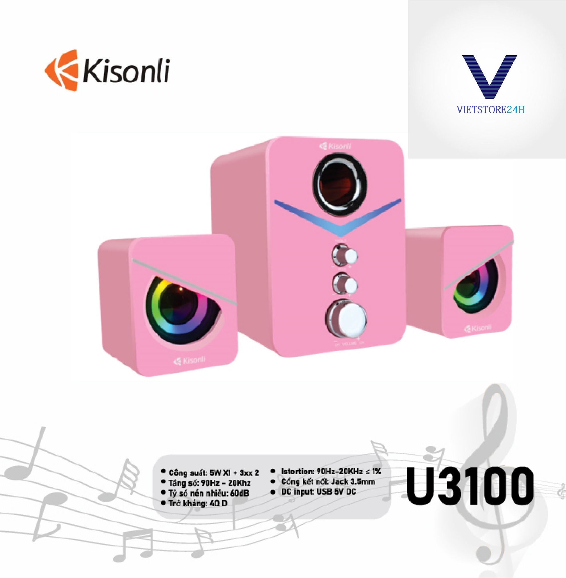 ✨Loa 2.1 Kisonli U-3100 Pink LED - Hàng chính hãng