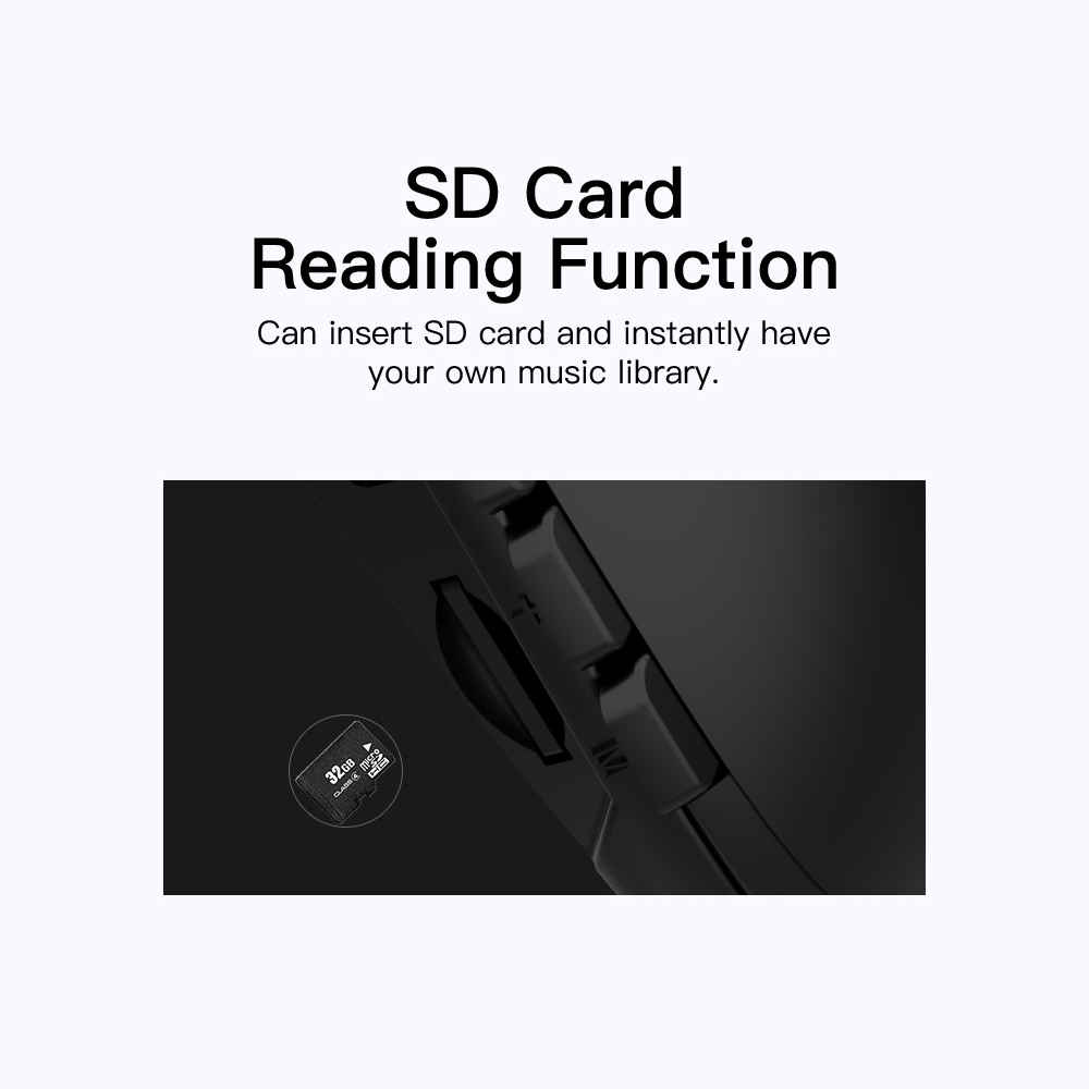 You can insert SD card(max 32GB) to enjoy your own music instantly. FM function supports personality radio, your can choose your favorite FM radio style.