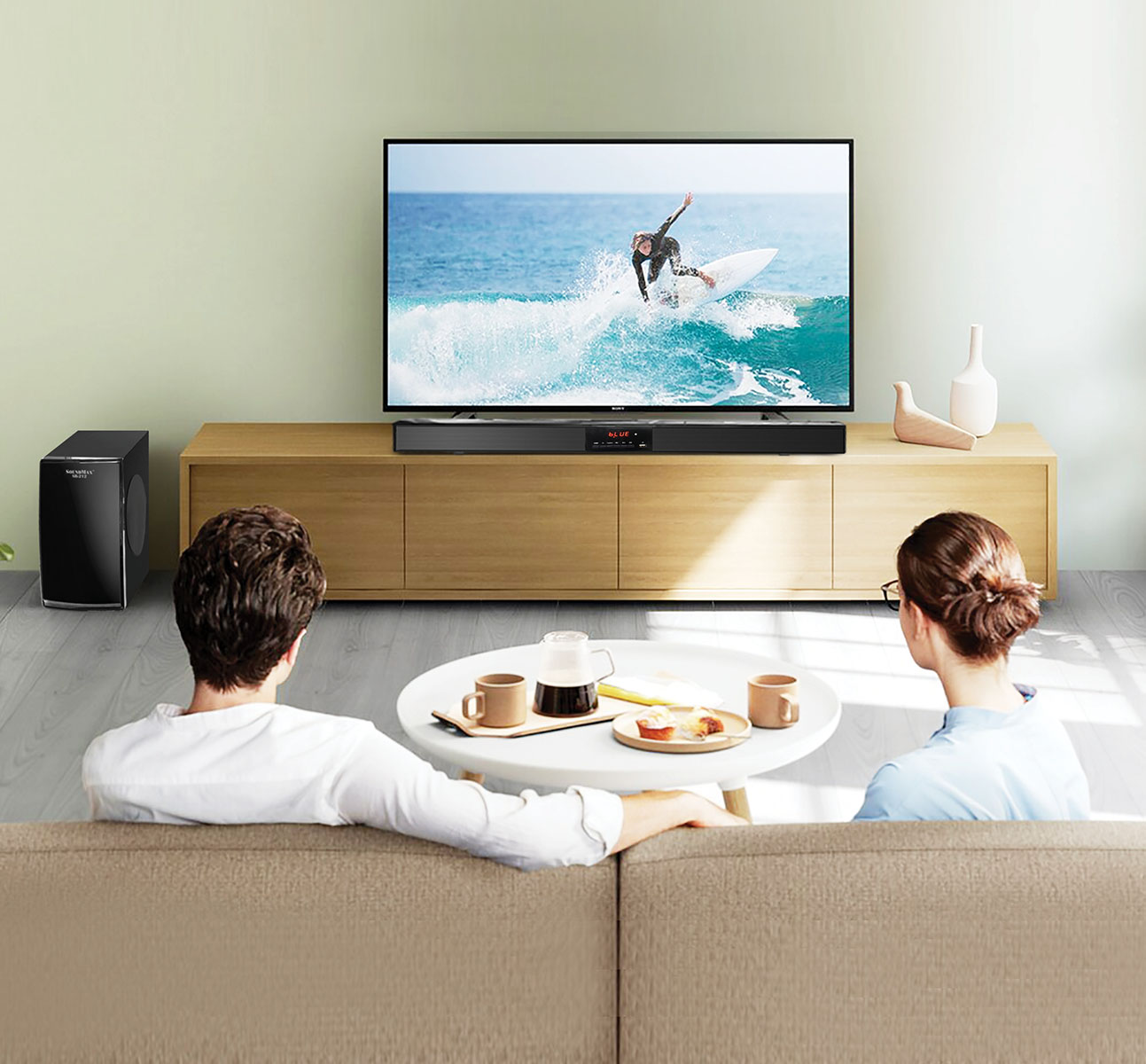 Nâng cao trải nghiệm của bạn với âm thanh vòm 3D và loa trung tâm tích hợp Âm thanh vòm sống động Công nghệ Dolby Audio / DTS Virtual:X Cảm nhận độ sâu âm thanh