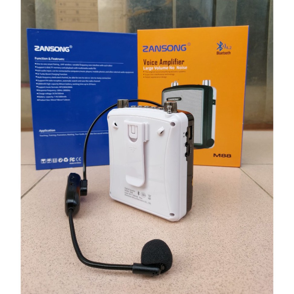 LOA TRỢ GIẢNG ZANSONG M88 - MÁY TRỢ GIẢNG KÈM MICRO CÀI TAI KHÔNG DÂY - KẾT NỐI BLUETOOTH 4.2, AUX, USB, SD CARD, FM - CÔNG SUẤT 10W - CÓ ECHO HÁT KARAOKE DỄ DÀNG - PIN SẠC DUNG LƯỢNG LỚN CHO THỜI GIAN SỬ DỤNG LÊN ĐẾN 6H - ÂM THANH RÕ RÀNG, SẮC NÉT