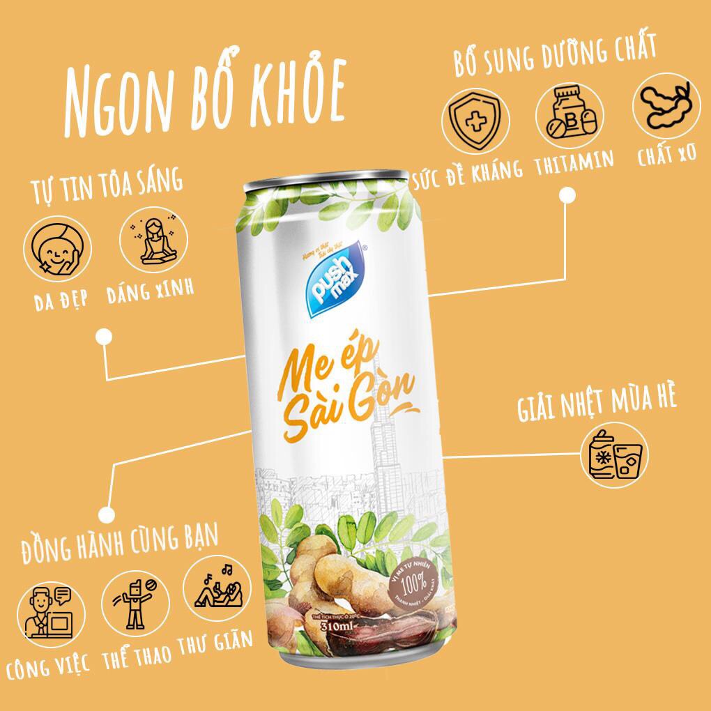 ✨Lốc 6 Lon Nước Trái Cây Me Ép Sài Gòn Pushmax (310ml x 6 Lon)