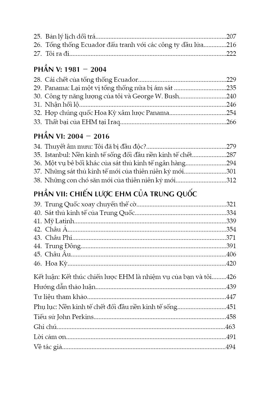 Trong hai ấn phẩm trước, John Perkins đã tiết lộ những vụ tham nhũng và mưu đồ quốc tế đã và đang biến nền cộng hòa Hoa Kỳ thành một đế chế toàn cầu. Trong ấn bản thứ 3 này, cựu EHM John Perkins sẽ tiếp tục quá trình đó bằng cách mô tả những sửa đổi nguy hiểm có tính hiệu quả cao của Trung Quốc đối với chiến lược EHM và đưa ra một kế hoạch để chuyển đổi một nền kinh tế chết, suy thoái thành một nền kinh tế sống, tái sinh thành công. Ông đã cập nhật và bổ sung thêm 12 chương mới bùng nổ trình bày chi tiết về sức hấp dẫn, sự bóc lột và sự tàn phá của chiến lược EHM của Trung Quốc ở Mỹ Latinh, châu Á, châu Phi, Trung Đông, thậm chí là cả châu Âu.