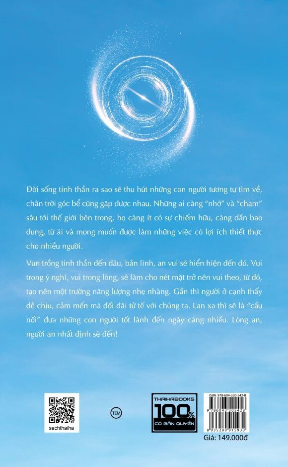Lòng An Người An Đến - Soul (Tánh Pháp) - bìa mềm - Giá bìa: 149.000đ Nên những trang viết từ “Lòng an người an đến”, mong được cùng bạn thả lòng nhìn lại chặng hành trình đã bước qua với những xúc cảm chân thành của tình người. Nếu lúc nào đọc đến đoạn có cảm giác “quen quen” như mình đã từng gặp chuyện này ở đâu rồi, hãy để tâm thức tự vận hành. Rồi hẳn bạn sẽ nhớ ra một số chuyện, một ý nghĩa nào đó đưa đẩy chúng ta có mặt trên cuộc đời này. Cuốn sách là ghi chép những suy ngẫm trong quá trình rèn dưỡng thân tâm. Cảm đến đâu viết đến đó, trải nghiệm đến đâu chia sẻ đến đó. Thường sau thời đọc kinh, nghe pháp, tĩnh lặng cho tâm bớt lao xao, cho bản thân biết “nhìn sâu” về một vấn đề, mình mới bắt đầu viết. Các trang sách được viết ra cũng từ lúc lòng được an. Cũng như sau những kinh nghiệm đã có, nhìn lại mình và lắng nghe câu chuyện của nhiều người thông qua những dòng tin gửi về trên trang Fanpage Chuyện của Soul, mình hiểu ra phần nào lý do ai cũng hướng tìm về bình an. Ngoài kia, còn rất nhiều người chật vật, khổ về thân hoặc tâm. Với sức nhỏ bé, mình chỉ biết thông qua các dòng viết làm “cầu nối” cho mọi người tìm thấy nhau mà động viên, trợ lực. Đời sống tinh thần ra sao sẽ thu hút những con người tương tự tìm về, chân trời góc bể cũng gặp được nhau. Những ai càng “nhớ” và “chạm” sâu tới thế giới bên trong, họ càng ít có sự chiếm hữu, càng dần bao dung, từ ái và mong muốn được làm những việc có lợi ích thiết thực cho nhiều người. Vun trồng tinh thần đến đâu, bản lĩnh, an vui sẽ hiển hiện đến đó. Vui trong ý nghĩ, vui trong lòng, sẽ làm cho nét mặt trở nên vui theo, từ đó, tạo nên một trường năng lượng nhẹ nhàng. Gần thì người ở cạnh thấy dễ chịu, cảm mến mà đối đãi tử tế với chúng ta. Lan xa thì sẽ là “cầu nối” đưa những con người tốt lành đến ngày càng nhiều. Lòng an, người an nhất định sẽ đến! Nhẹ nhàng tốt, nhẹ nhàng thương! Nhẹ nhàng mỉm cười, nhẹ nhàng an! Nhẹ nhàng gặp gỡ, nhẹ nhàng chia xa. Người cần đi nhất định sẽ đi. Người cần đến nhất định sẽ đến! Đời này vẫn đẹp là vì, có một số đoạn duyên phải ngừng, số khác lại nảy nở. Tùy ngộ mà an, tùy duyên mà sống! Tác giả: Soul (Tánh Pháp) là một tác giả Việt, anh cũng là người sáng lập trang fanpage Chuyện của Soul trên F – Sách đã xuất bản: