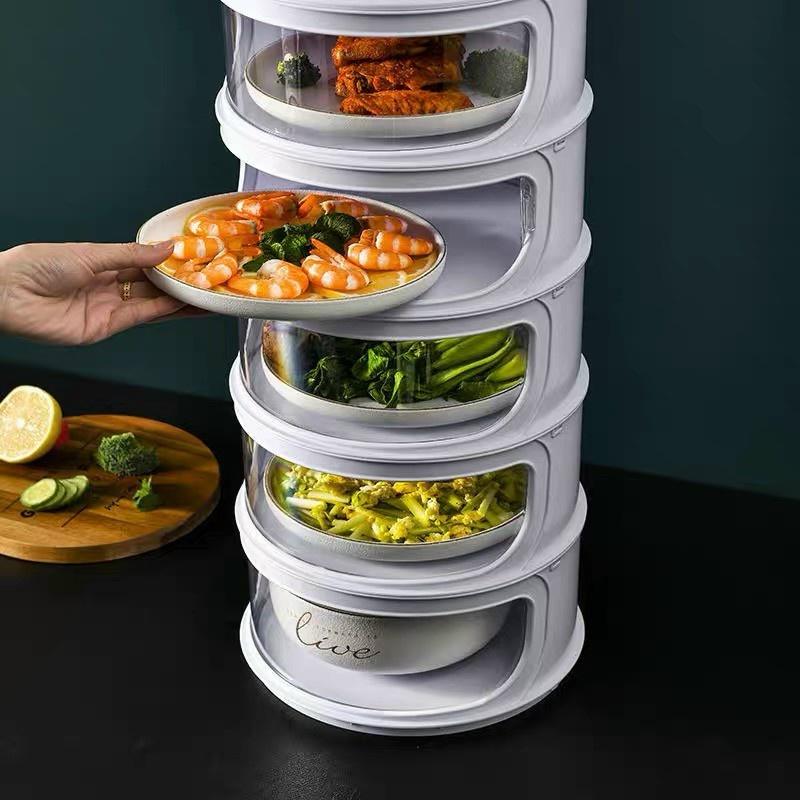 Lồng bàn nhiều tầng giữ nhiệt 5 gấp gọn thông minh đậy thức ăn mini đa năng nhựa trong suốt