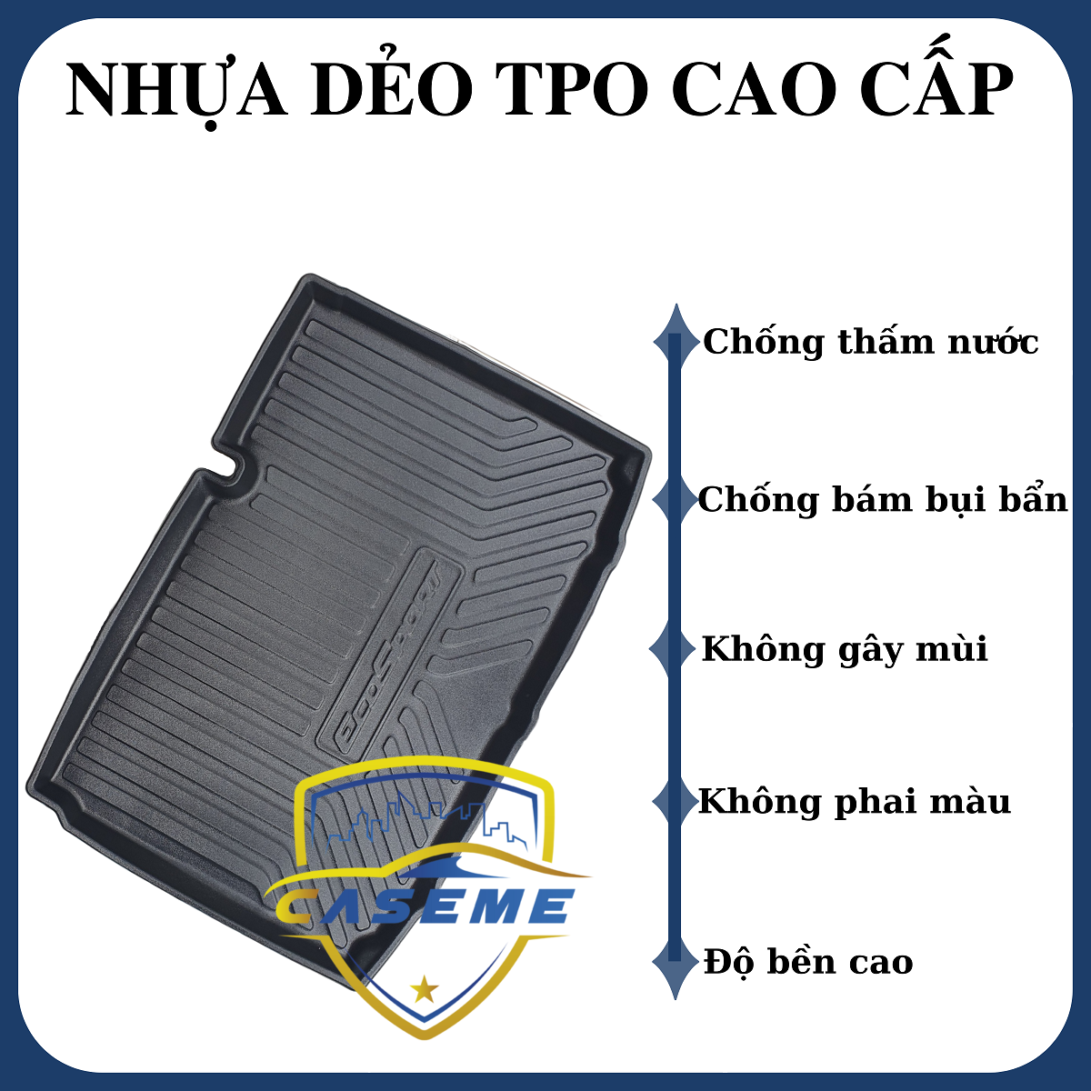 Lót cốp dành cho Ford Ecosport 2018 - 2021 cao cấp. Vật liệu TPO (Thermoplastic Elastomers – nhựa nhiệt dẻo đàn hồi). Đó là một loại vật liệu cao cấp chống thấm nước, không mùi,