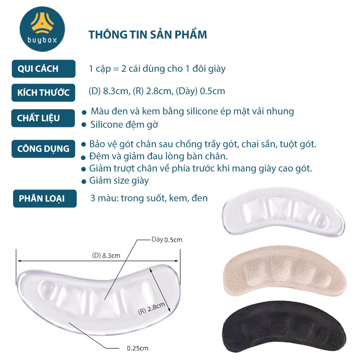 + CÔNG DỤNG - Giúp chống tuột gót, chống trầy gót sau và giảm size giày . - Sản phẩm thiết kế 4D nên ôm trọn phần lõm sau mắt cá chân - Chất liệu