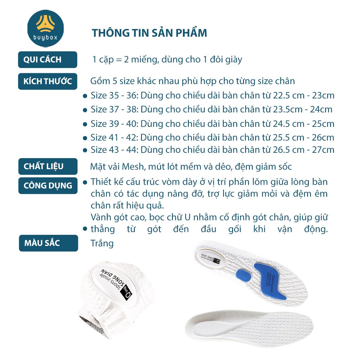 CÔNG DỤNG NỔI BẬT Lót giày nguyên bàn chân đa năng buybox là sự kết hợp giữa lót giày và lót giảm size giày. Lót mũi giày đệm êm ngón chân cũng có công dụng