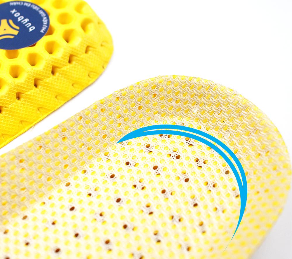 Lót giày có cấu trúc tổ ong thông hơi thoáng khí giúp bàn chân khô thoáng, giảm mùi hôi cho chân.