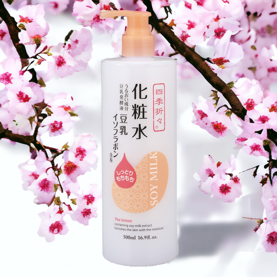 Lotion Dưỡng Trắng Mịn Da Hatomugi Shikioriori Soy Milk Lotion Chiết Xuất Đậu Nành (500mL)