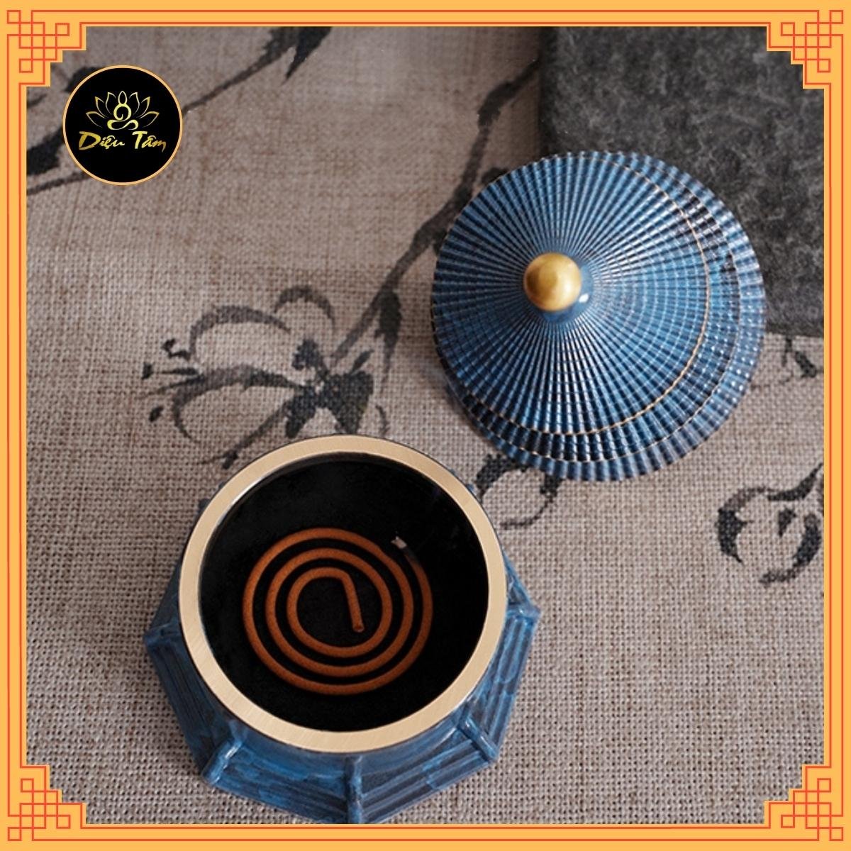 -Lư xông trầm bằng gốm có tấm lót chống nóng , chống ố vàng đáy lư , lư hương sứ kèm đế cắm được tất cả các loại nhang , giúp tạo ra bầu không