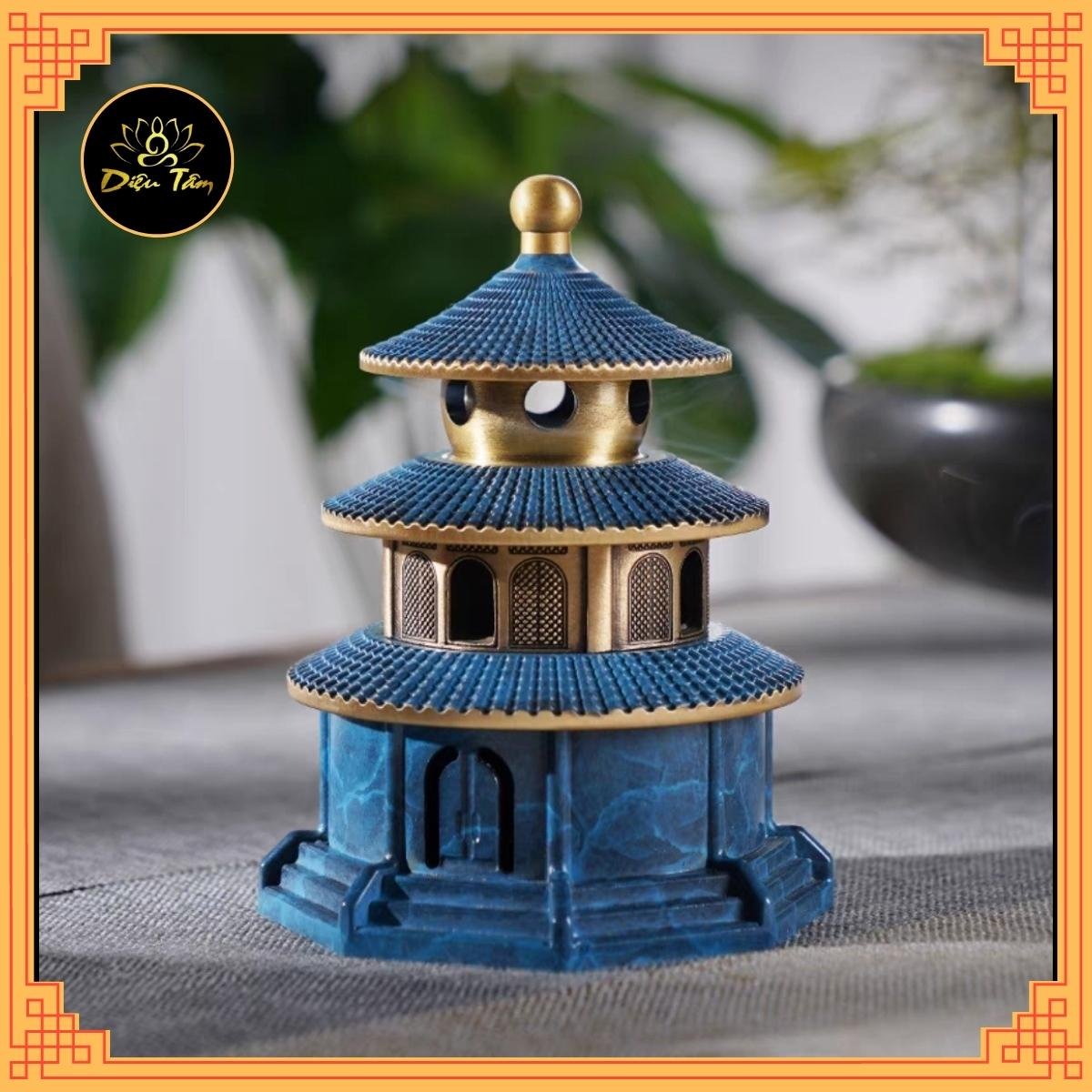 ✨Lư xông trầm đồ thờ cúng bằng đồng hình bảo tháp sơn xanh phụ kiện trang trí ban thờ, bàn làm việc
