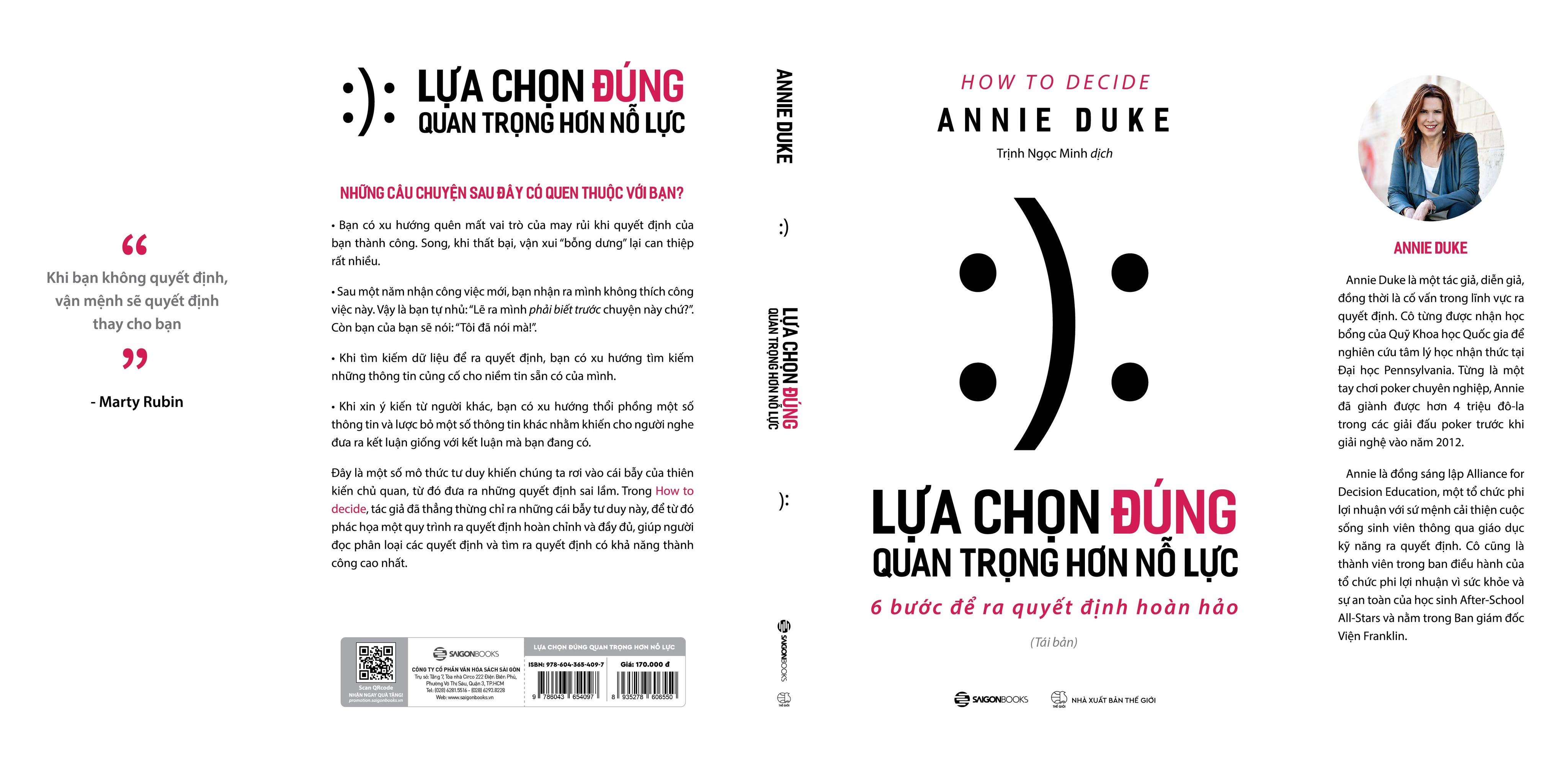 Nếu bạn nhìn nhận lại trong cuộc sống của mình cũng như những quan sát những người xung quanh, bạn sẽ thấy chúng ta rất dở trong việc lý giải những gì diễn ra đằng sau một quyết định có chất lượng, từ việc chúng ta lựa chọn trường đại học, cho đến những chỗ làm đầu tiên sau khi ra trường. Thậm chí khi hỏi các giám đốc điều hành – những người làm công việc ra quyết định, theo đúng nghĩa đen – rằng một quy trình ra quyết định chất lượng là gì, câu trả lời mà chúng ta nhận được thường khá mơ hồ: “Tôi chủ yếu tin vào trực giác của mình”, “Tôi đồng thuận với sự nhất trí của hội đồng”, “Tôi cân nhắc các phương án bằng cách lập danh sách ưu-nhược điểm”. Và đây là lý do bạn đọc cuốn sách này.