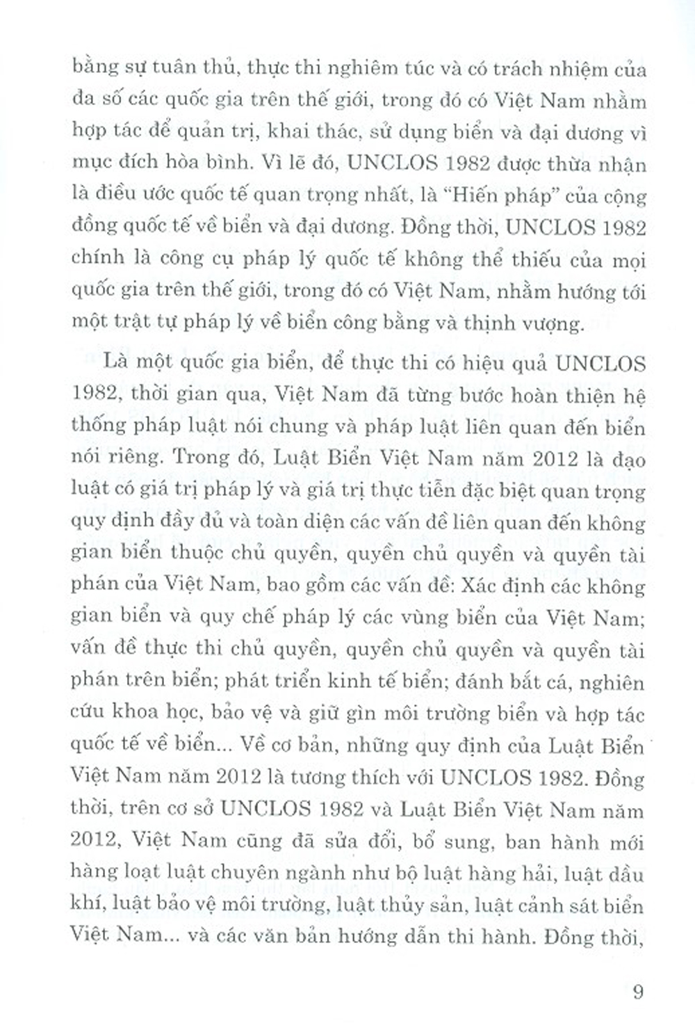 Với vai trò vô cùng quan trọng đó của biển, nên các quốc gia, vùng lãnh thổ đặc biệt chú trọng đến việc tăng cường khai thác, bảo tồn, hợp tác quản trị biển vì mục đích hòa bình, phát triển. Những mối quan hệ đan xen giữa lợi ích về kinh tế, chính trị, lãnh thổ… trên biển đã dẫn đến những mâu thuẫn hết sức quyết liệt và phức tạp giữa các quốc gia, vùng lãnh thổ. Sự cần thiết phải thiết lập hành lang pháp lý rõ ràng đối với các vấn đề liên quan đến biển đã góp phần thúc đẩy các quốc gia, vùng lãnh thổ xây dựng, ký kết các văn bản pháp lý về biển, điển hình hiện nay là Công ước của Liên hợp quốc về luật biển năm 1982, và ở Việt Nam là Luật Biển Việt Nam năm 2012.