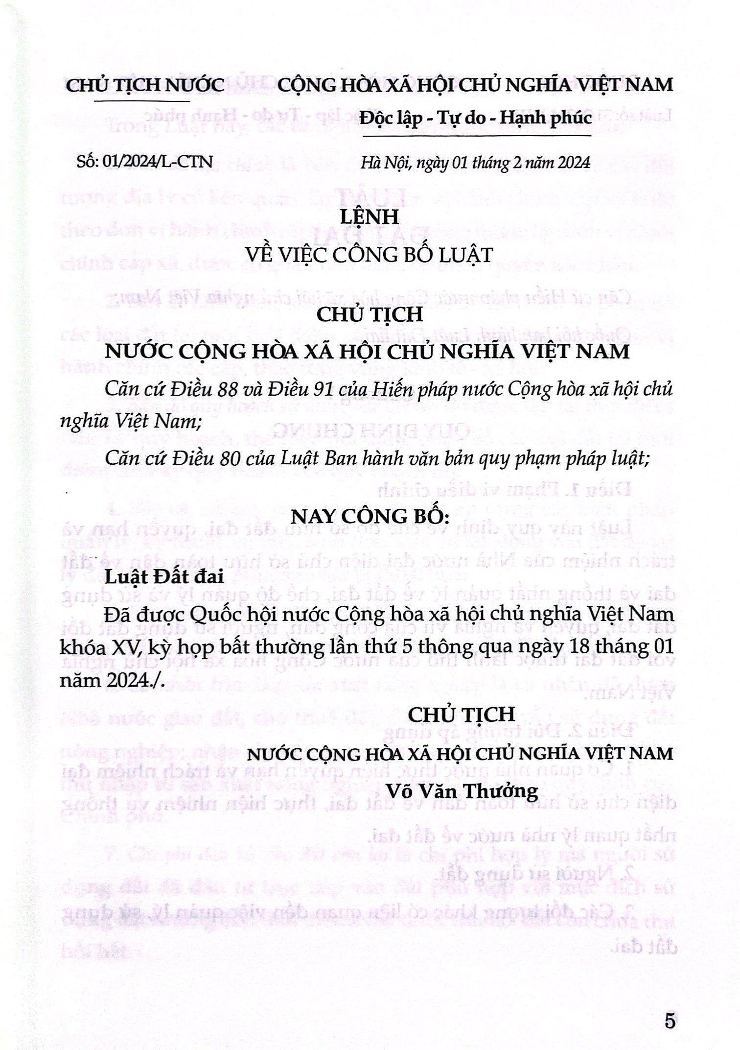 Luật đất đai số 31/2024/QH15 ngày 18 tháng 1 năm 2024 hiệu lực thi hành.