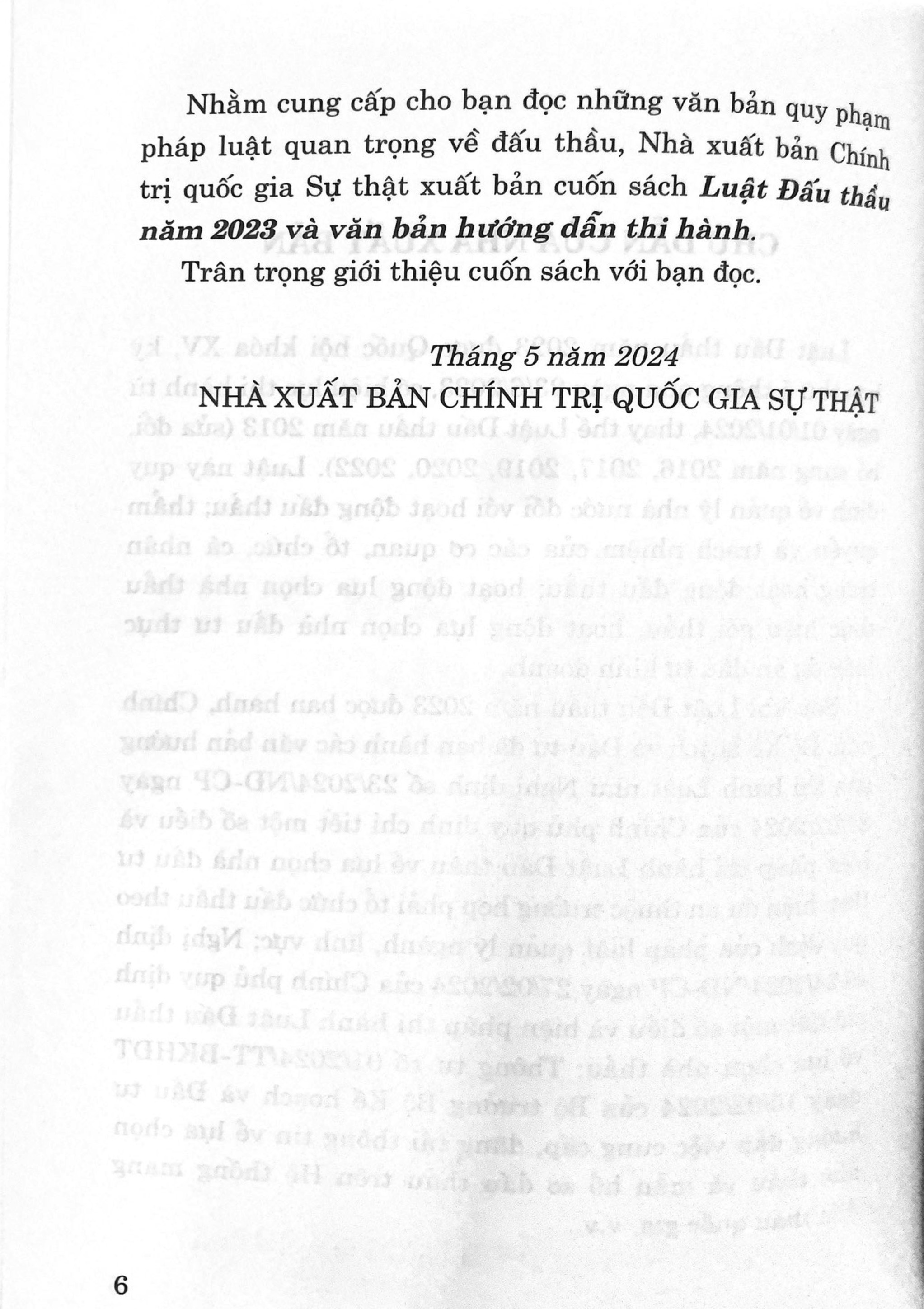 Sách Luật Đấu Thầu năm 2023 (Sửa đổi, bổ sung năm 2024, 2025) Tác giả: Quốc Hội. Nhà xuất bản: Chính Trị Quốc Gia Sự Thật. Năm xuất bản: 8.2025 Công ty phát hành: Nhà