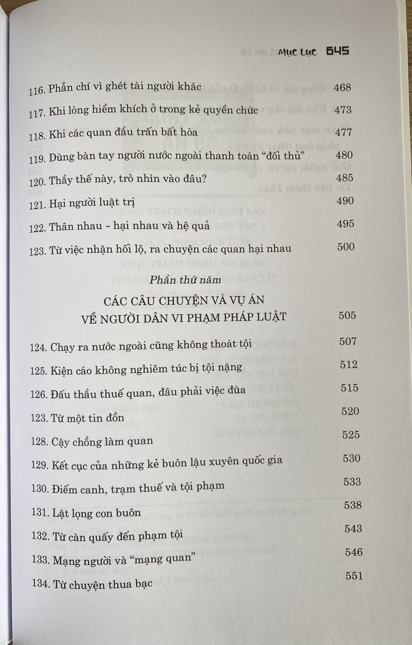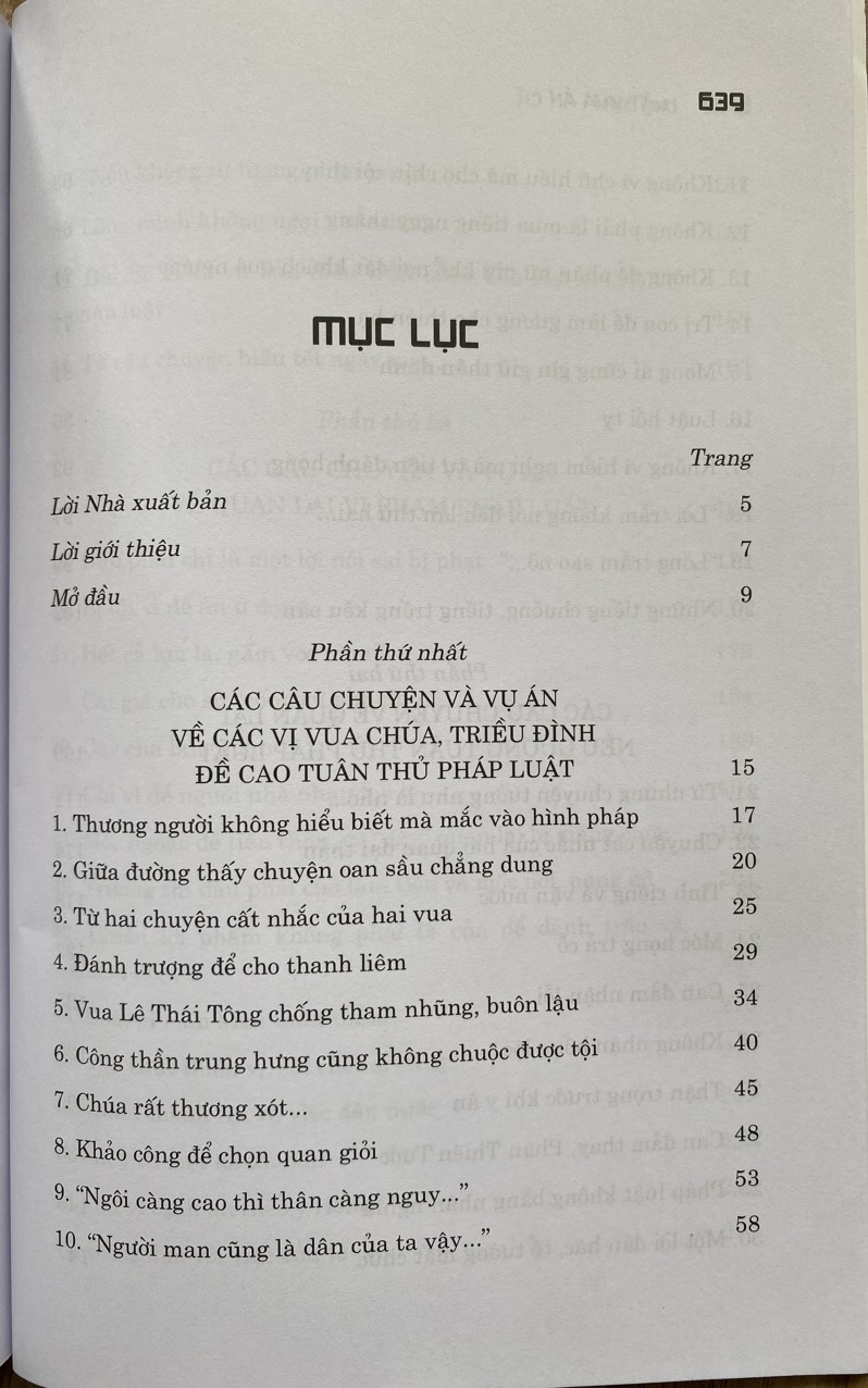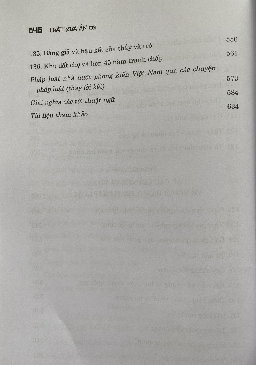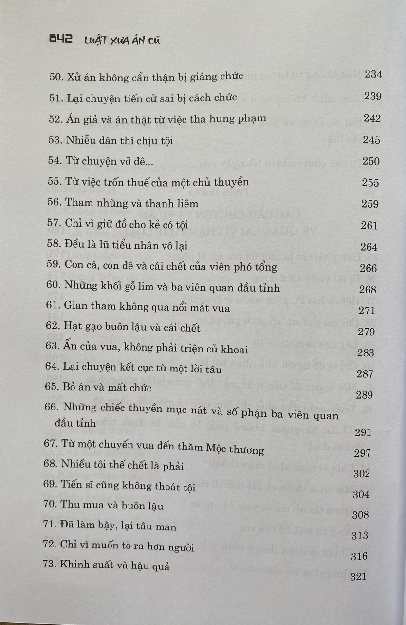 Mua tại TiktokTrong cuốn sách, tác giả đã công phu tập hợp 136 câu chuyện pháp luật thời phong kiến, được ghi lại trong các bộ chính sử của nước nhà; phân tích kỹ các tình tiết của các câu chuyện pháp luật, trong đó nhiều câu chuyện là những vụ án nổi tiếng trong lịch sử phong kiến Việt Nam, với sự có mặt của đủ các giai tầng xã hội từ vua chúa, đội ngũ quan lại các cấp, đến những người dân bình thường; liên quan tới rất nhiều mặt của đời sống xã hội.
