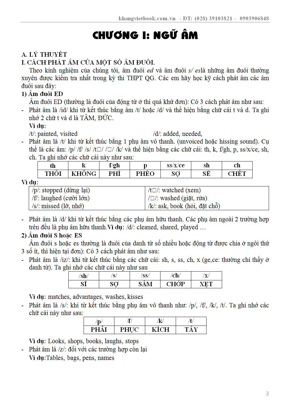 Cuốn sách bao gồm 3 chuyên đề lớn: Ngữ âm, Từ vựng và Ngữ pháp Trong mỗi chuyên đề lớn sẽ được chia thành các chủ đề bao gồm:  Các kiến thức trọng tâm.