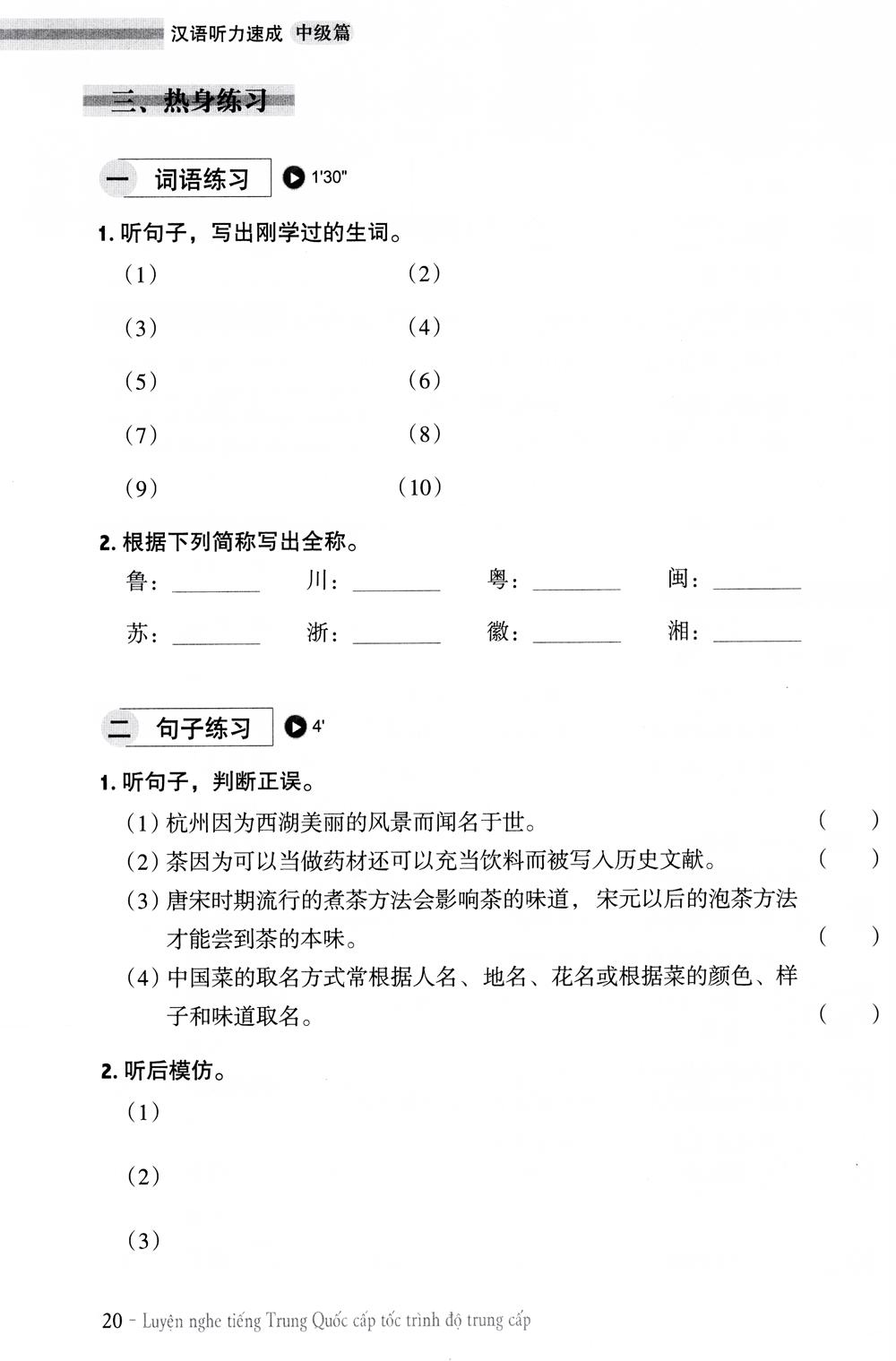 Luyện nghe tiếng Trung Quốc cấp tốc là bộ giáo trình được biên soạn cho sinh viên nước ngoài đến du học ngắn hạn tại Trung Quốc với mục đích giúp sinh viên bồi dưỡng kỹ năng giao tiếp. Toàn bộ giáo trình gồm 5 trình độ, được chia làm 3 cấp (sơ cấp, trung cấp và nâng cao), trong đó mỗi quyển tương ứng với một trình độ của sinh viên nước ngoài có nhu cầu học cấp tốc.