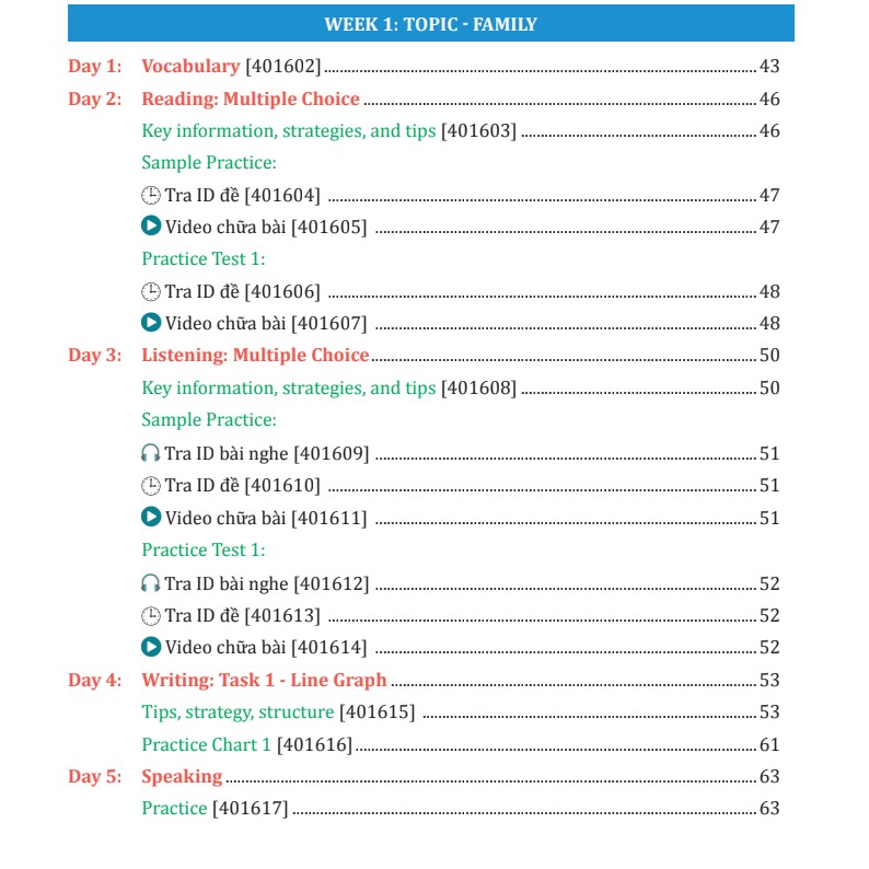 1. Hackers Basic Listening - Tuần 2 (Week 2) và Tuần 3 (Week 3): Làm quen với các dạng bài thường xuất hiện trong 4 Section của bài thi IELTS Listening. Cuốn sách sẽ đi
