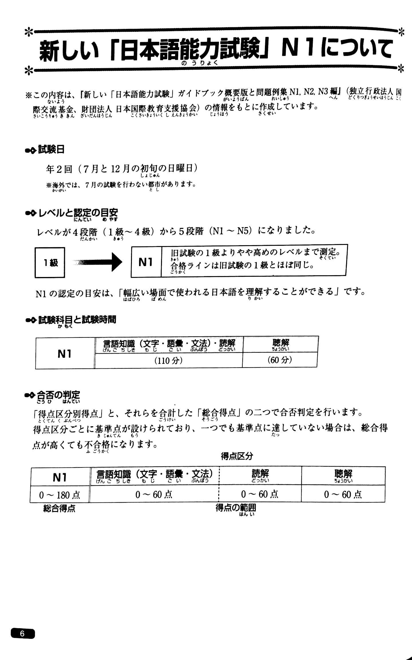 Luyện thi Năng lực Nhật ngữ N1 gồm 5 quyển: Hán tự (Kanji), Từ vựng (Goi), Đọc hiểu (Dokkai), Nghe hiểu (Choukai) và Ngữ