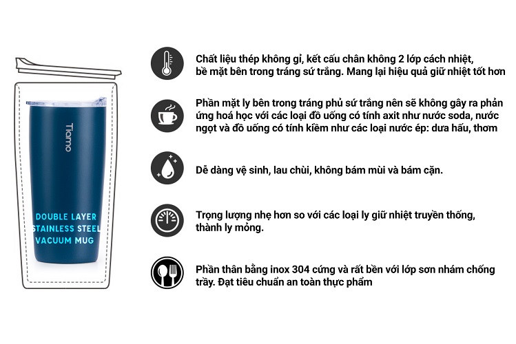✨Ly cà phê trà inox phủ sứ chân không Tiamo 250ml