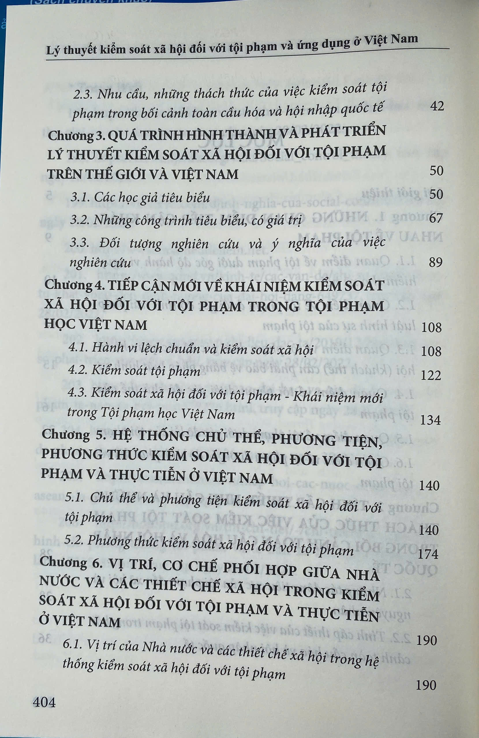 Chương 5: Tác giả giới thiệu hệ thống chủ thể, phương tiện, phương thức kiểm soát xã hội đối với tội phạm và thực tiễn ở Việt Nam.
