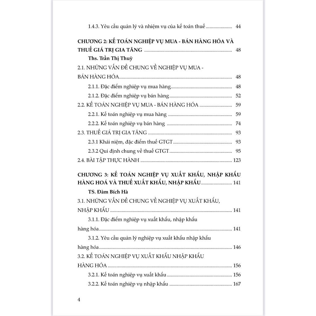 Sách - Lý thuyết - Thực hành - Giải pháp Kế toán & Thuế trong doanh nghiệp nhỏ và vừa Tác giả: PSG,TS.Hà Thị Thuy Vân - PSG,TS Vũ Thị Kim Anh - PSG,TS Trần Mạnh Dũng Nhà xuất bản: Nhà Xuất BảnTài chính Năm Xuất bản: 2023 Hình Thức: Bìa mềm Số trang: 504 Kích thước: 16 x 24 cm MÔ TẢ SẢN PHẨM Trong thời gian gần đây, để phù hợp với tình hình thực tiễn, các quy định về thuế của Việt Nam có nhiều thay đổi, như: Thông tư 80/2021/TTBTC hướng dẫn Luật Quản lý thuế và Nghị định 126/2020/NĐ-CP hướng dẫn Luật Quản lý thuế có hiệu lực ngày 01/01/2022; Thông tư 40/2021/TT-BTC hướng dẫn thuế giá trị gia tăng, thuế thu nhập cá nhân và quản lý thuế đối với hộ kinh doanh, cá nhân kinh doanh; Nghị định 123/2020/ NĐ-CP ban hành ngày 19-10-2021 và Thông tư 78-2021-TT-BTC ngày 17/9/2021 hướng dẫn Nghị định này đã quy định từ 1/7/2022 bắt buộc áp dụng hóa đơn điện tử trong hoạt động sản xuất, kinh doanh, người dùng bắt buộc phải thao tác, xử lý các vấn đề về hóa đơn trên phần mềm… Vì vậy, tiếp theo các tài liệu về thuế, kế toán thuế và kế toán tài chính trong doanh nghiệp mà nhóm tác giả đã ban hành, cuốn sách “Lý thuyết - Thực hành - Giải pháp kế toán và thuế trong doanh nghiệp nhỏ và vừa” nhằm giúp bạn đọc nắm vững kiến thức và thực hiện tốt pháp luật hiện hành về các 9 loại thuế cũng như một số phần hành kế toán chủ yếu trong DNNVV liên quan đến từng sắc thuế. Cuốn sách được thiết kế thành 7 chương do PGS,TS Hà Thị Thúy Vân, PGS,TS. Vũ Thị Kim Anh và PGS,TS. Trần Mạnh Dũng đồng chủ biên cùng với sự tham gia biên soạn của các chuyên gia, giảng viên có nhiều kinh nghiệm cả về kiến thức học thuật và thực tiễn kế toán, thuế và tài chính trong các doanh nghiệp. MỤC LỤC CHƯƠNG 1: TỔNG QUAN VỀ KẾ TOÁN VÀ THUẾ TRONG DOANH NGHIỆP NHỎ VÀ VỪA CHƯƠNG 2: KẾ TOÁN NGHIỆP VỤ MUA - BÁN HÀNG HÓA VÀ THUẾ GIÁ TRỊ GIA TĂNG CHƯƠNG 3: KẾ TOÁN NGHIỆP VỤ XUẤT KHẨU, NHẬP KHẨU HÀNG HOÁ VÀ THUẾ XUẤT KHẨU, NHẬP KHẨU CHƯƠNG 4: KẾ TOÁN TIỀN LƯƠNG, CÁC KHOẢN TRÍCH THEO LƯƠNG VÀ THUẾ THU NHẬP CÁ NHÂN CHƯƠNG 5: KẾ TOÁN KẾT QUẢ KINH DOANH VÀ THUẾ THU NHẬP DOANH NGHIỆP CHƯƠNG 6: THUẾ VÀ KẾ TOÁN THUẾ BẢO VỆ MÔI TRƯỜNG VÀ MỘT SỐ LOẠI THUẾ PHÍ, LỆ PHÍ KHÁC CHƯƠNG 7: TUÂN THỦ THUẾ VÀ TỐI ƯU HÓA THUẾ TRONG DOANH NGHIỆP NHỎ VÀ VỪA