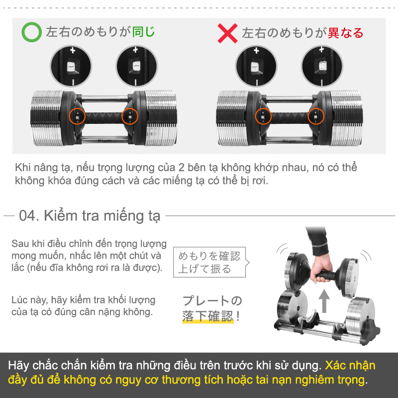 + Đi đơn cho khách bộ tạ tay điều chỉnh mỗi lần tăng giảm 1kg Lysin Metal 32kg