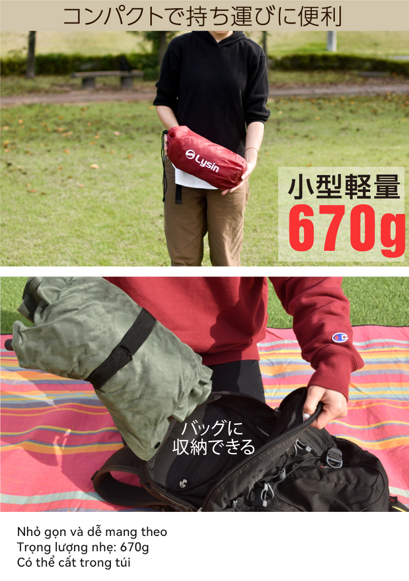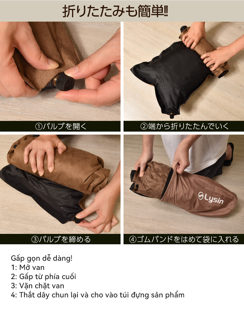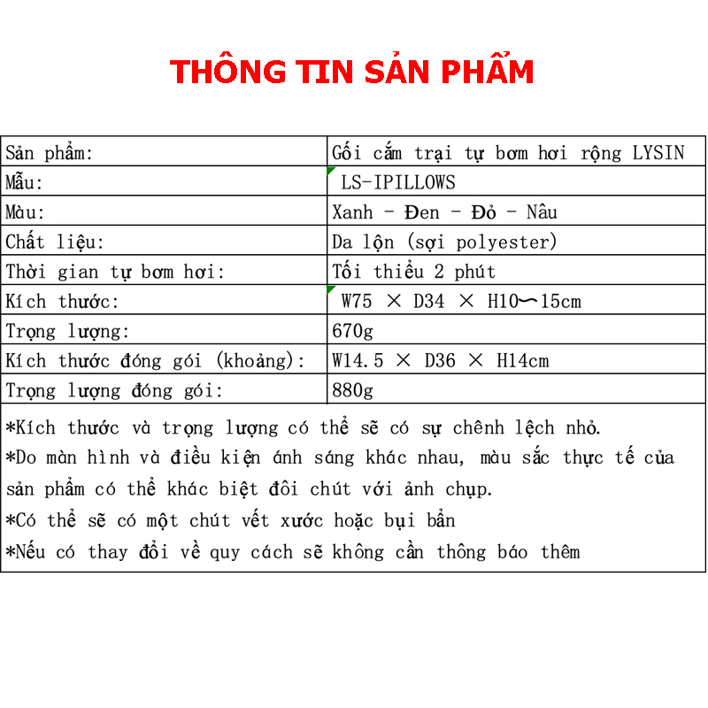 ✨Lysin - gối đầu tự bơm hơi chất liệu da lộn siêu rộng 70cm thoải mái cắm trại dã ngoại camping, picnic du lịch