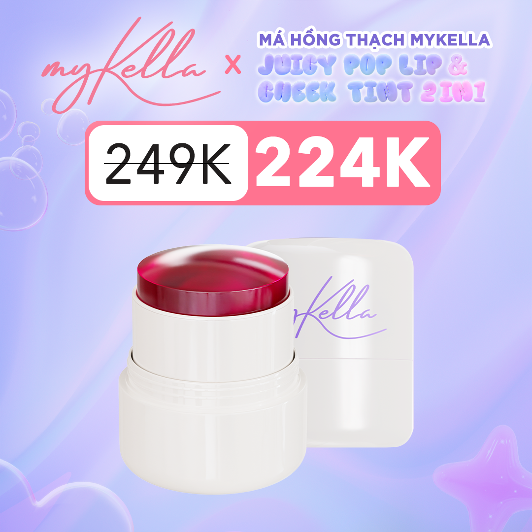 - Má hồng thạch đa năng myKella dùng được cho cả má và môi. Sản phẩm thuộc dòng makeup dưỡng da, kết cấu dạng thạch jelly dẻo dai, dễ tán tạo hiệu ứng ửng hồng tự nhiên và không gây mốc nền.